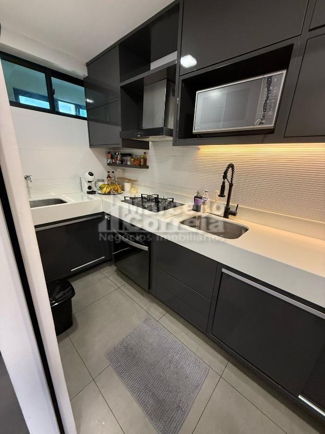 Bancadas da Cozinha em Nano Glass + de R$180.000,00 em móveis fixos sob medida e reforma completa, Feito completamente do zero com projeto de arquitetura e engenharia, Projeto original possuía 3 quartos. Aumentamos a sala, tornando-a mais ampla, ficando assim com 2 quartos. (Se necessário, comprador pode reformar futuramente voltando a configuração original de 3 quartos)