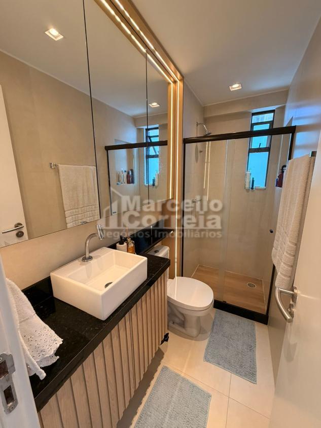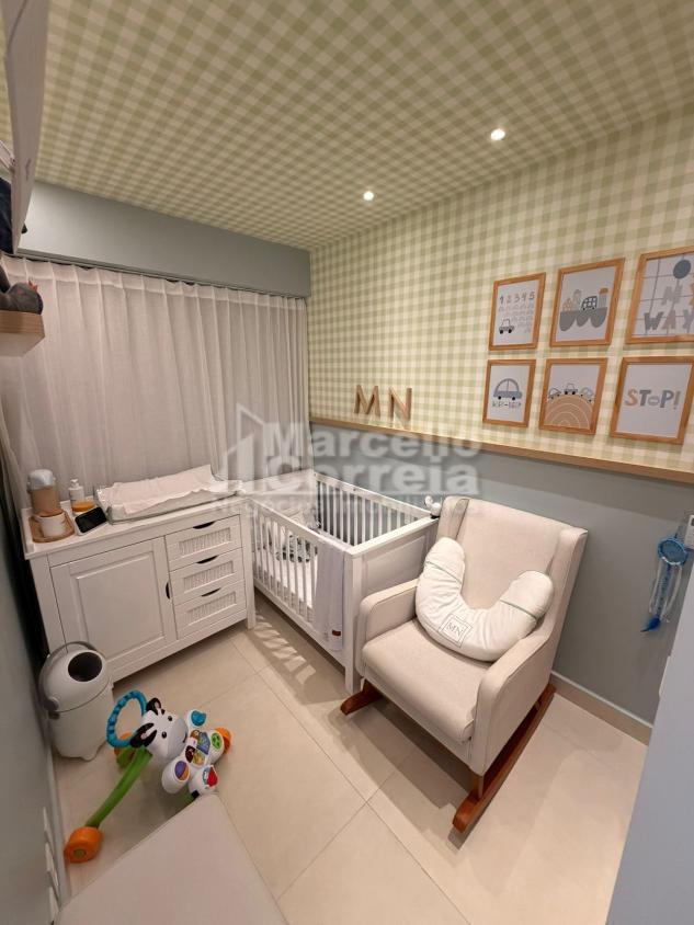 Apartamento de 94m² 3 quartos sendo 1 suíte com closet, 1 banheiro social, banheiro de serviço.