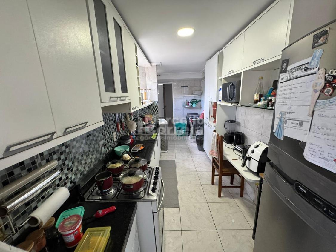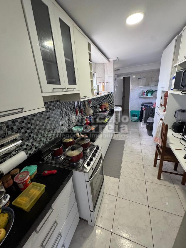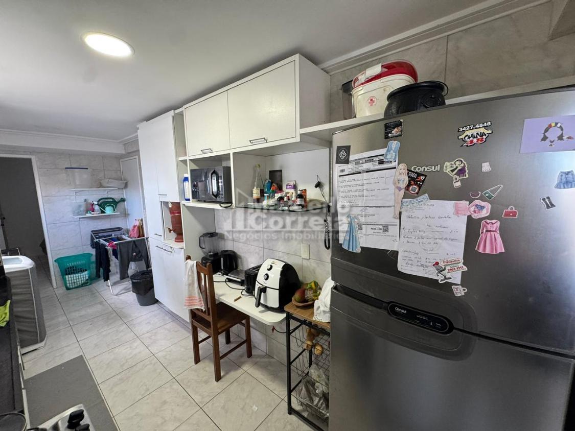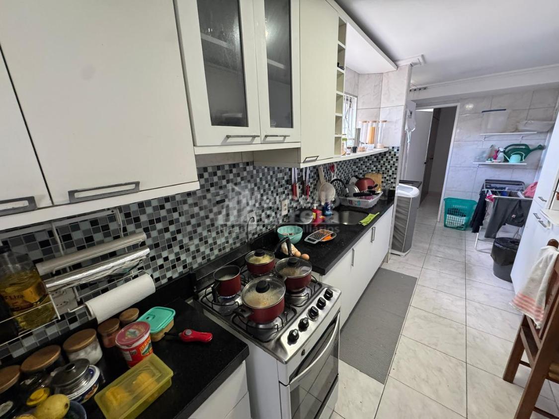 Imóvel de 112m² com 3 quartos, sendo 1 suíte, 1 banheiro social, sala para 2 ambientes, área de serviço, despensa, varanda e WC de serviço.