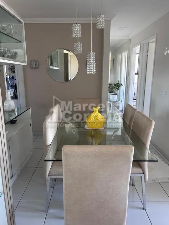 Apartamento de 60m² composto por 2 quartos, sendo 1 suíte, wc social, sala para 2 ambientes com varanda integrada, cozinha e área de serviço.