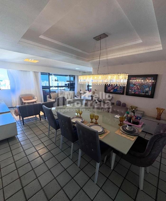Apartamento de 135m² composto por 4 quartos (3 suítes), wc social, sala para 2 ambientes, varanda, cozinha, área de serviço e dependência completa.