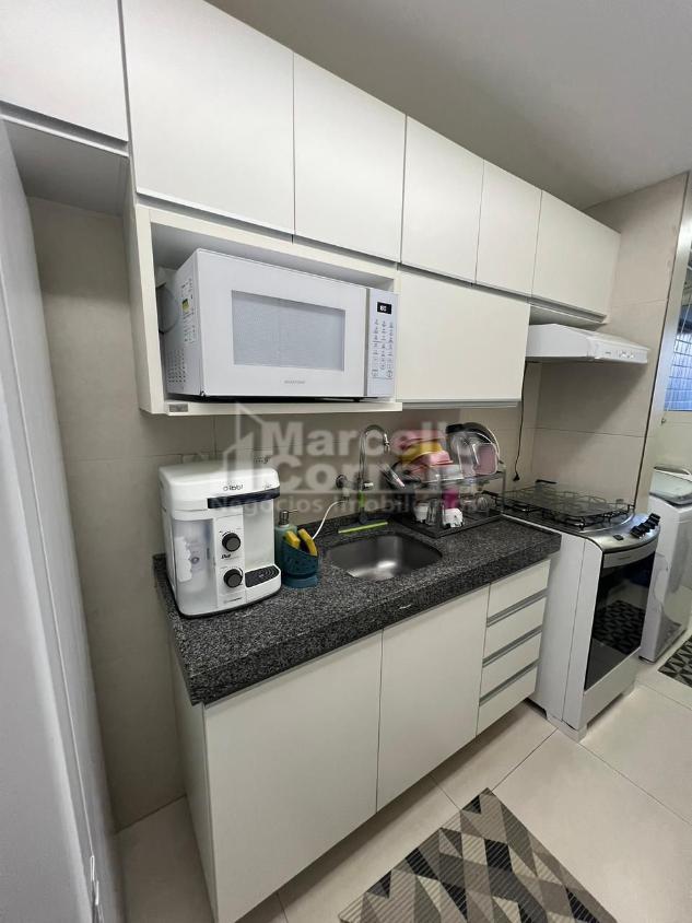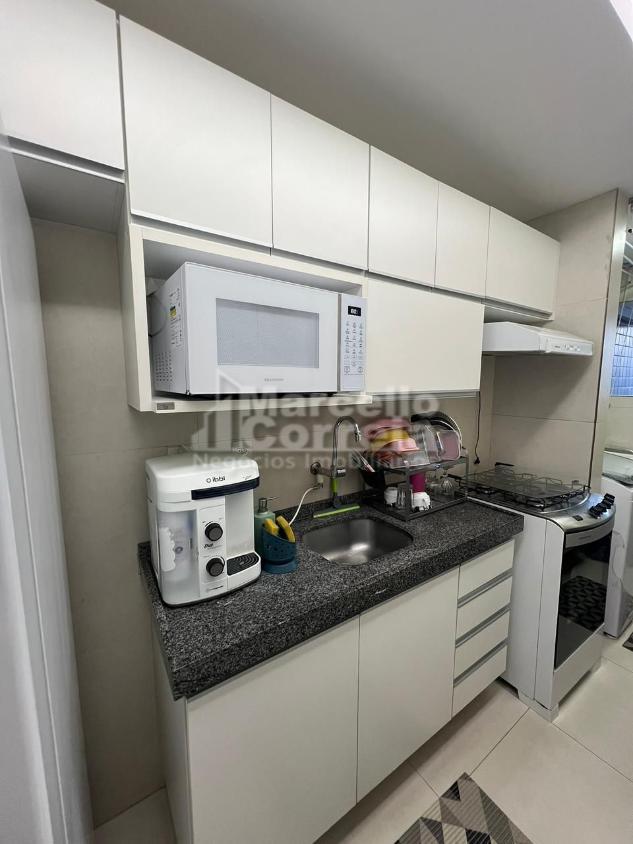 Apartamento de 60m² 3 Quartos originais, sendo que 2 deles foram integrados para formar uma ampla suíte master com closet, oferecendo maior espaço e conforto, Sala para dois ambientes, com detalhes de espelhos e parede decorativa em painel de gesso, proporcionando um ambiente moderno e sofisticado, Banheiros com móveis planejados, espelhos amplos e boxes em vidro temperado, Cozinha equipada, com móveis planejados e acabamentos de alta qualidade, Área de serviço, prática e reservada, Varanda com cortina de vidro, ideal para relaxar e aproveitar a vista, Todo no porcelanato, unindo sofisticação e praticidade, Teto de gesso rebaixado, com projeto de iluminação em LED, valorizando todos os ambientes, Projeto de som ambiente, integrado e funcional, proporcionando conforto auditivo em diversos cômodos, Garagem coberta e privativa, para maior conforto e segurança, Porta com fechadura automática, garantindo praticidade e segurança no acesso ao imóvel, Acabamento de alto padrão, pensado em cada detalhe.