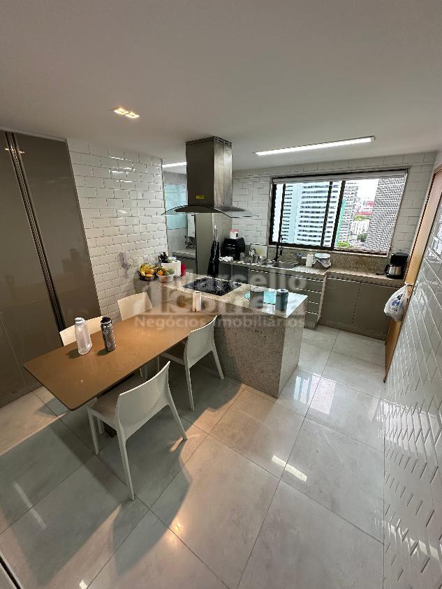 Apartamento de 125m² 4 quartos 2 suítes, sala 2 ambientes, wc social, wc serviço, cozinha.