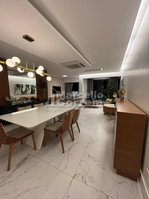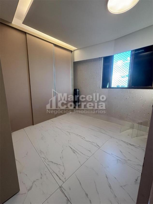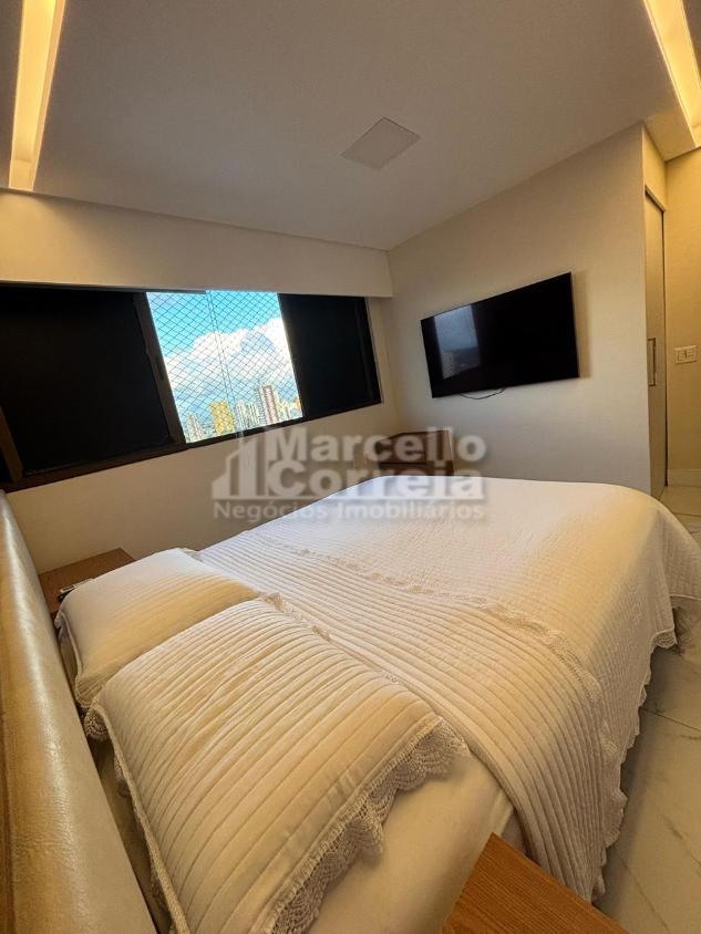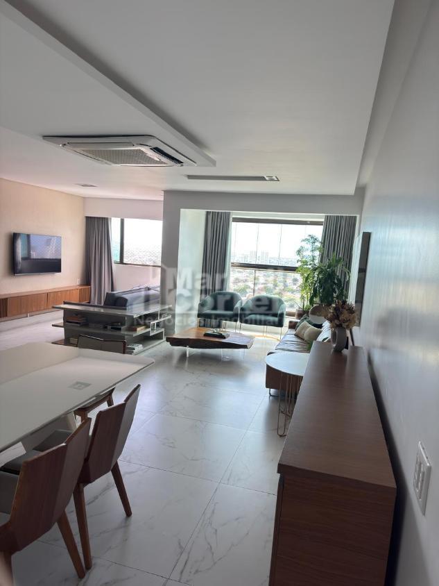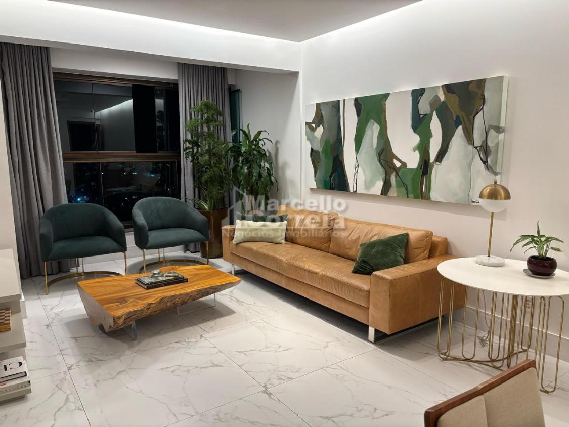 Apartamento de 125m² 4 quartos originalmente, agora reformado, com apenas 2 suítes, sala para 2 ambientes com varanda integrada, wc social, wc serviço, cozinha.