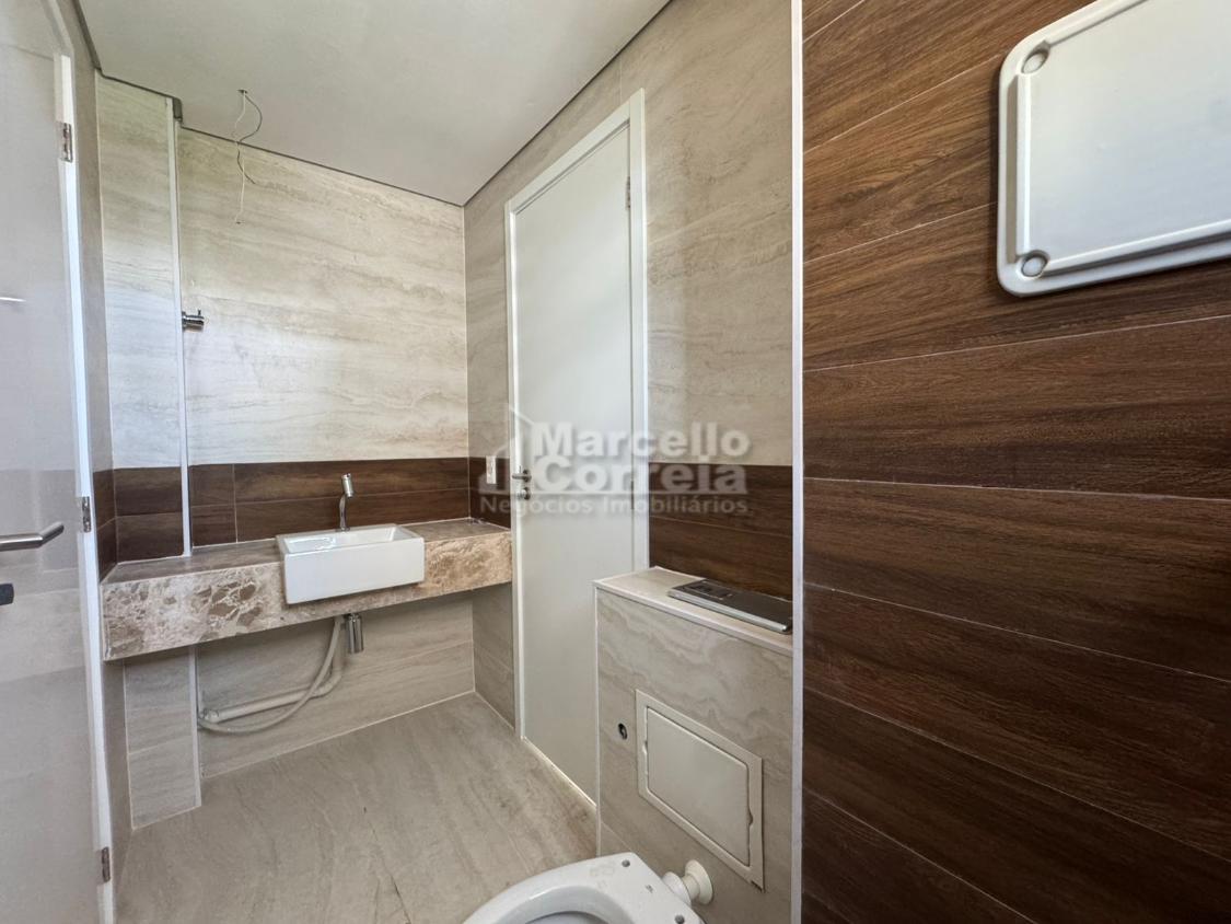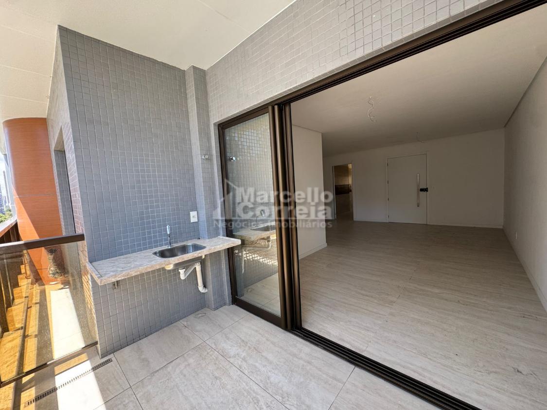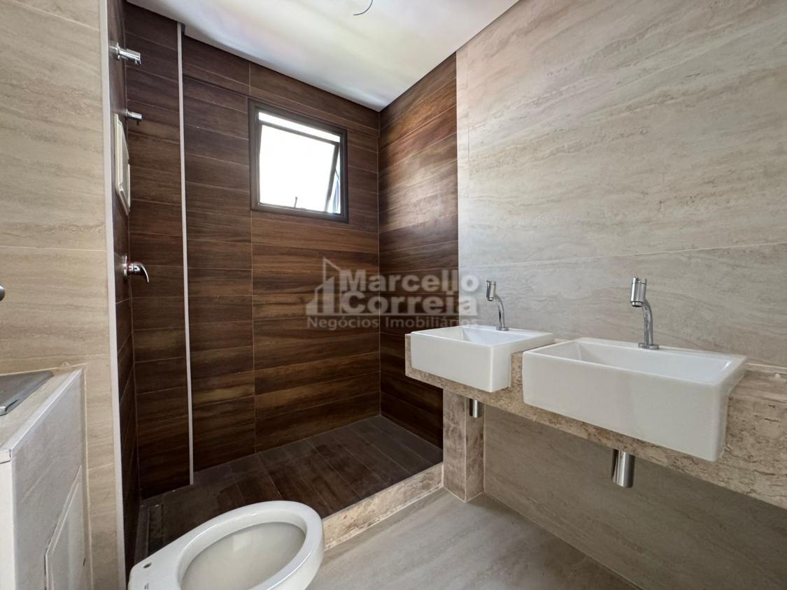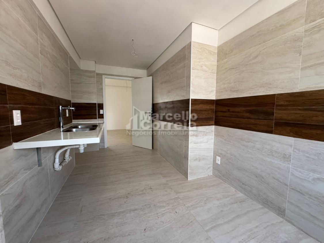 Imóvel de 124m2, totalmente nascente, varanda gourmet, sala para dois ambientes, wc social, 04 quartos suítes (dois compartilhando um mesmo wc canadense), copa, cozinha, área de serviço, quarto e wc de serviço.