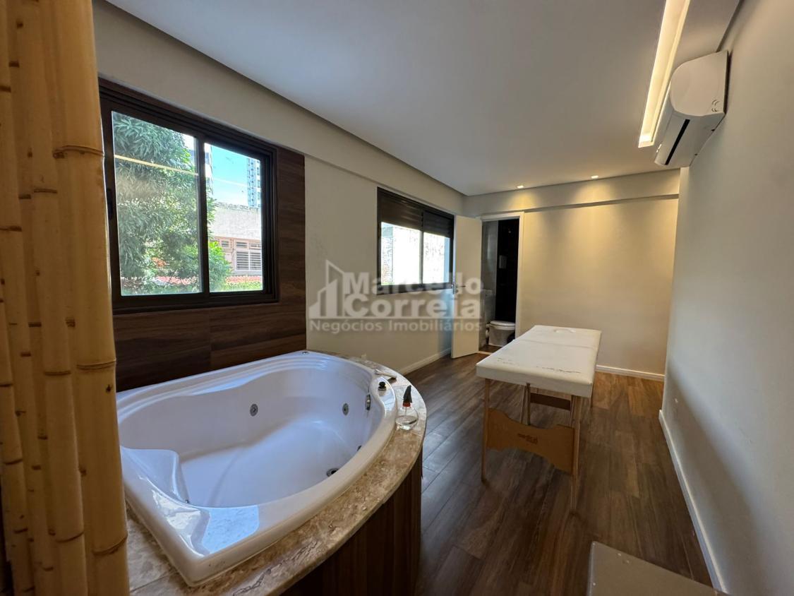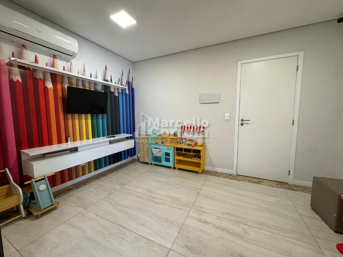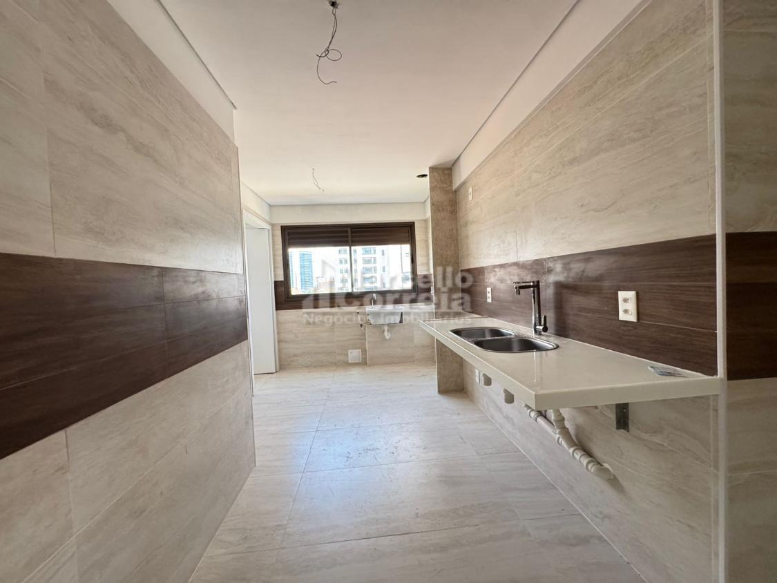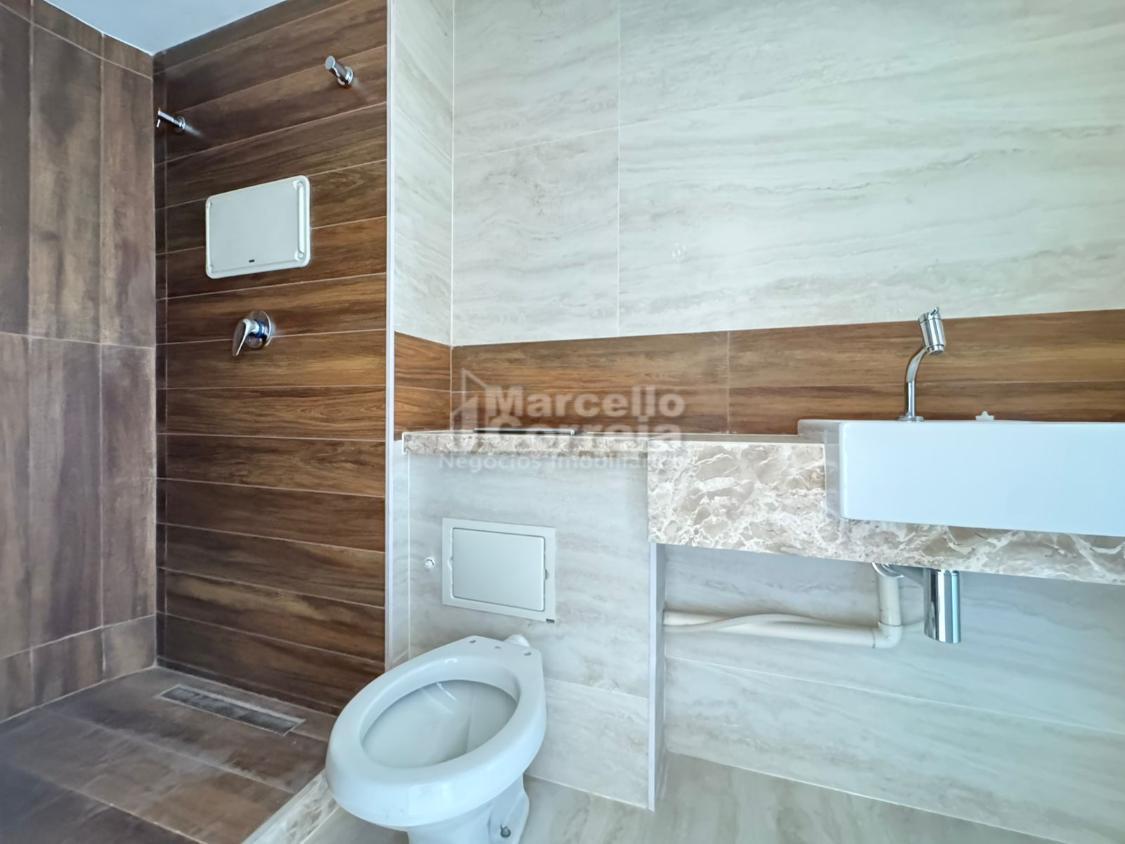 Imóvel de 124m2, totalmente nascente, varanda gourmet, sala para dois ambientes, wc social, 04 quartos suítes (dois compartilhando um mesmo wc canadense), copa, cozinha, área de serviço, quarto e wc de serviço.