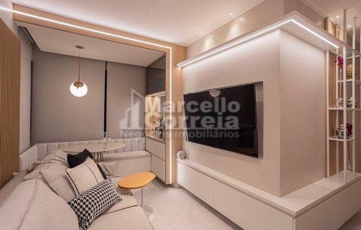 Imóvel de 68m² 02 quartos sendo 01 suíte, Wc Social, Sala para 02 ambientes, Varanda integrada à sala, Cozinha americana, Área de Serviço.