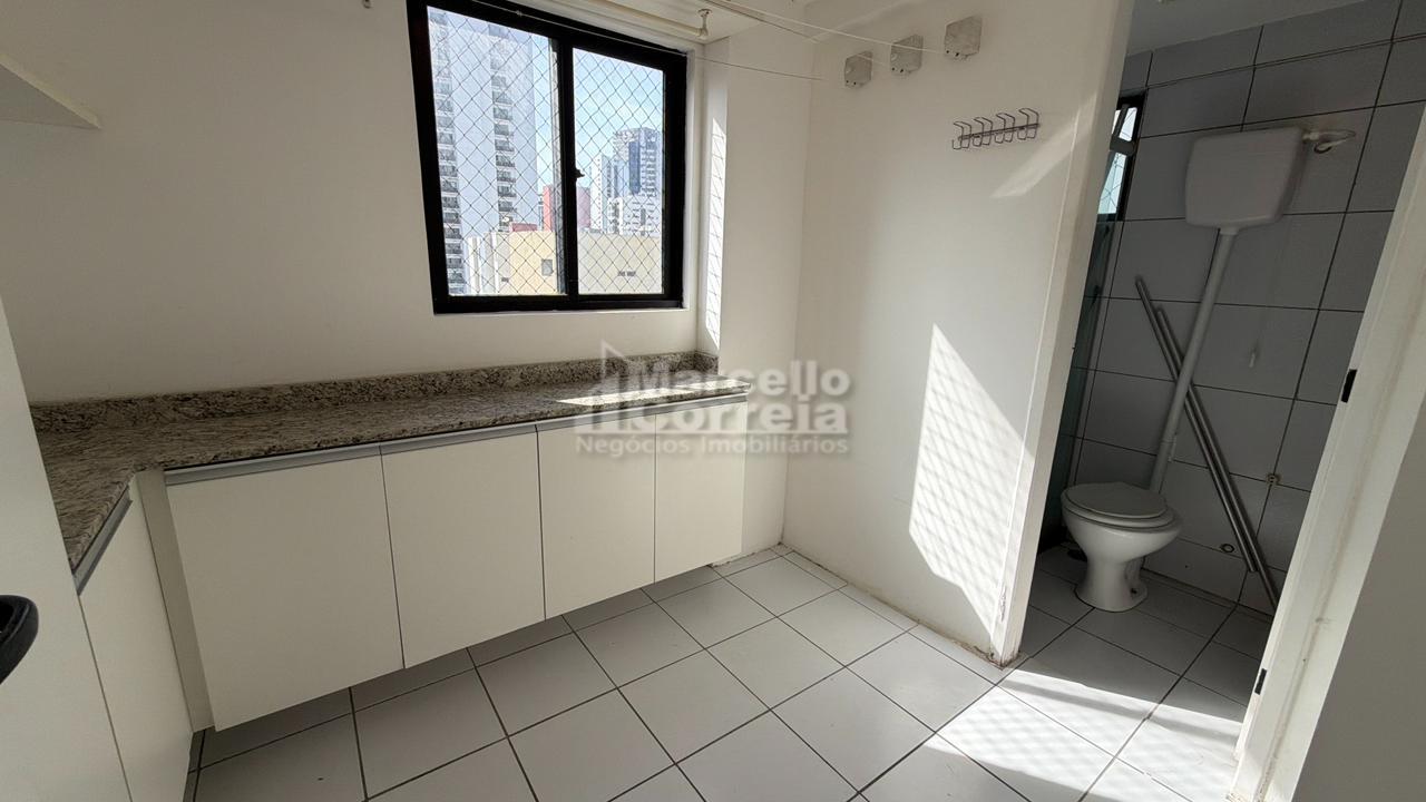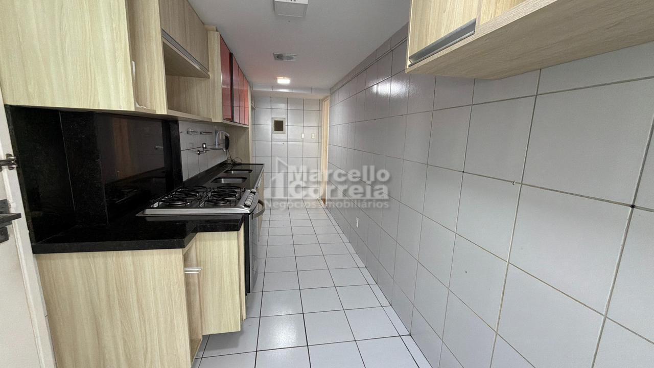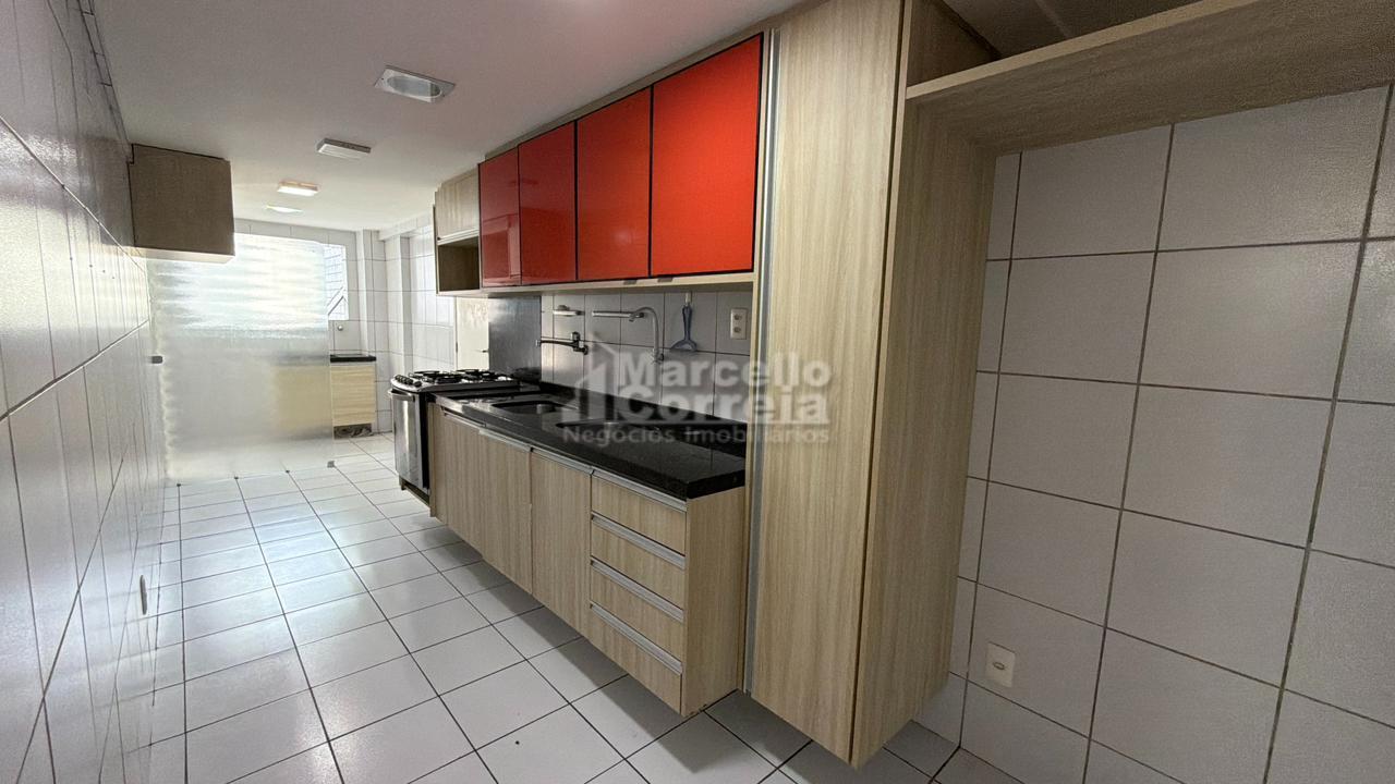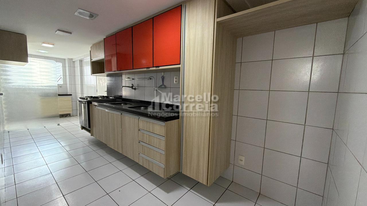 Apartamento de 100m²: 03 quartos sendo 02 suítes, Salas ampla, Varanda, Wc social, Cozinha, Área de Serviço, Dependência completa.