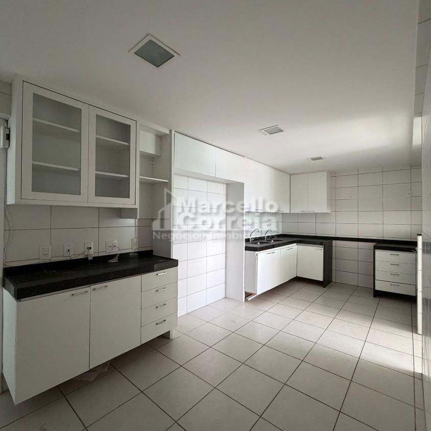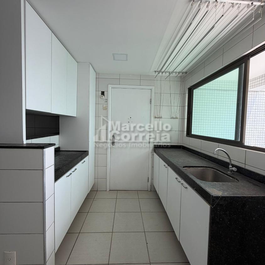 Imóvel de 177m²: 3 suítes, ampla cozinha e área de serviço com armários com dependência completa de serviço, sala ampliada para 3 ambientes, varanda com cortina de vidro e lavabo.